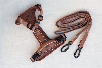 Enderne er afsluttet med detaljer i faux læder, som giver snoren et eksklusivt og gennemført finish. Snoren er udstyret med stærke sorte aluminiumskarabinhager med safety lock, der sikrer ekstra tryghed på gåturen.