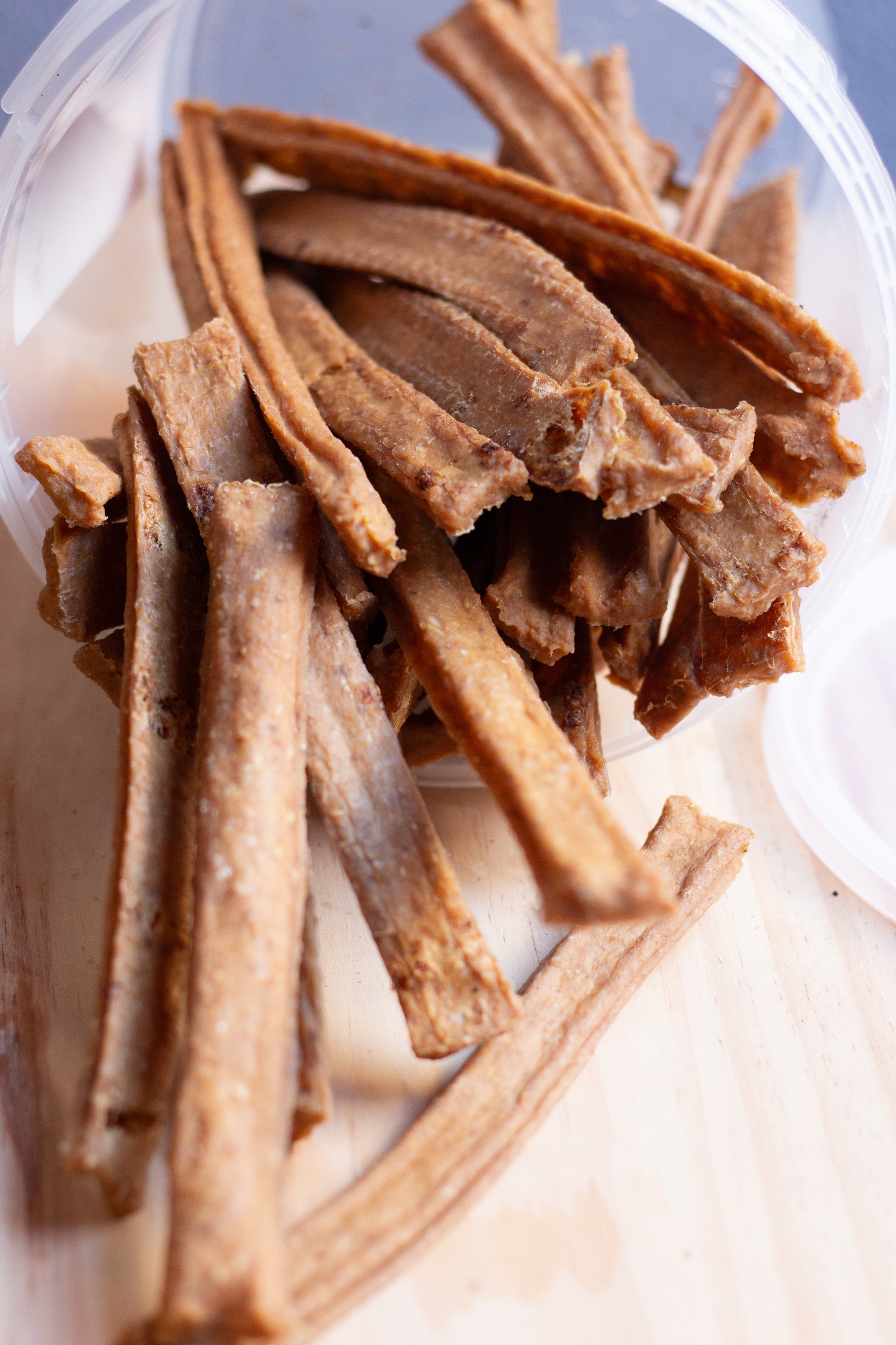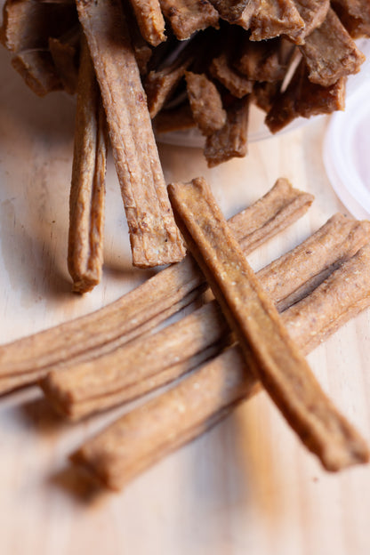 Vores vital tyggepinde til tandpleje produceres i vores egen fabrik uden tilsætning af majs, hvede, soja, farvestoffer, konserveringsmidler, kødmel eller andre fyldstoffer og lufttørres skånsomt ved lav temperatur for at bevare vitaminer og mineraler. Resultatet er sprøde og lækre snacks, der masserer hundens tandkød og hjælper med at fjerne tandsten efter måltider. Vores lufttørreteknologi er en moderne fortolkning af århundredgamle konserveringsteknikker.