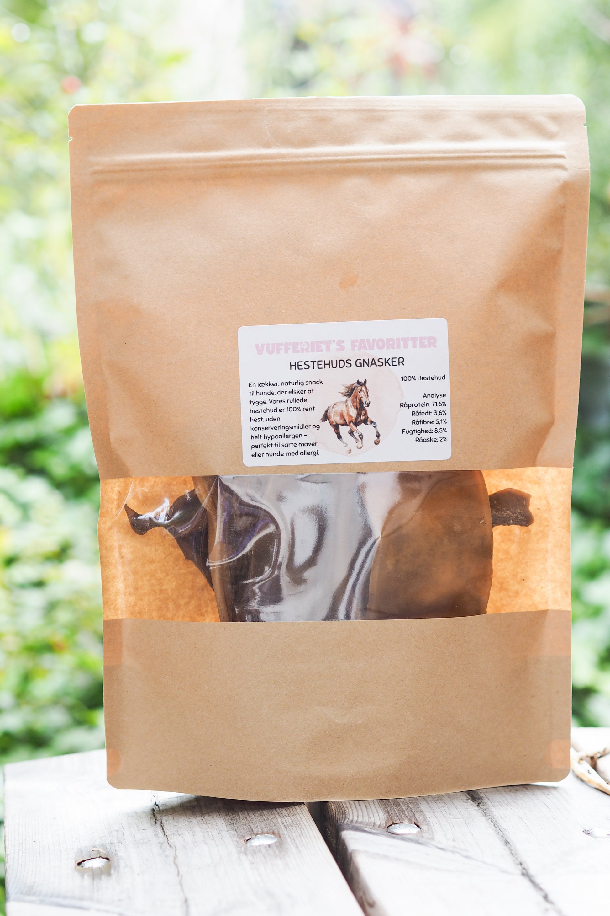 En lækker, naturlig snack til hunde, der elsker at tygge. Vores rullede hesteskind er 100% rent hest, uden konserveringsmidler og helt hypoallergen – perfekt til sarte maver eller hunde med allergi.